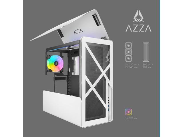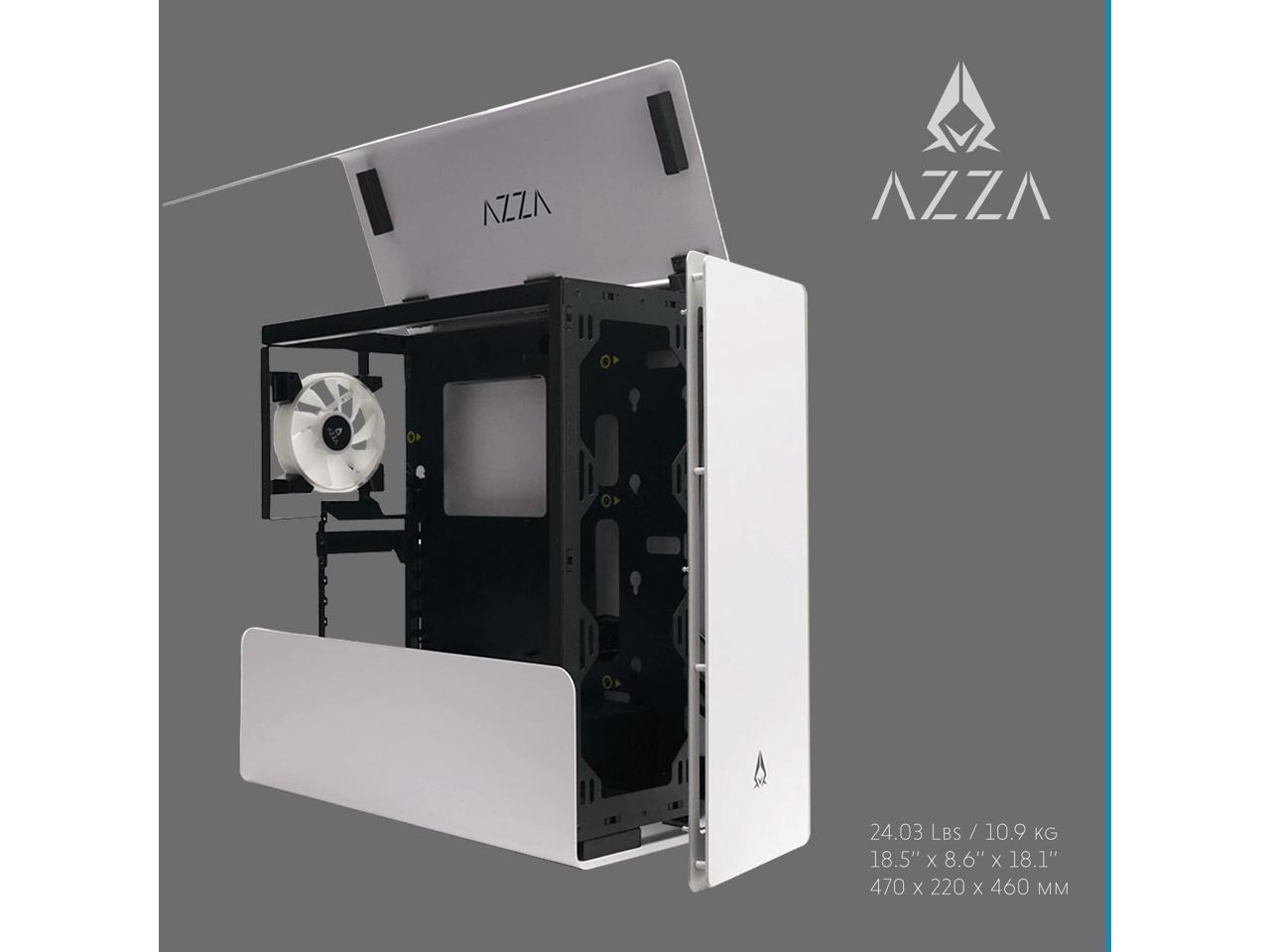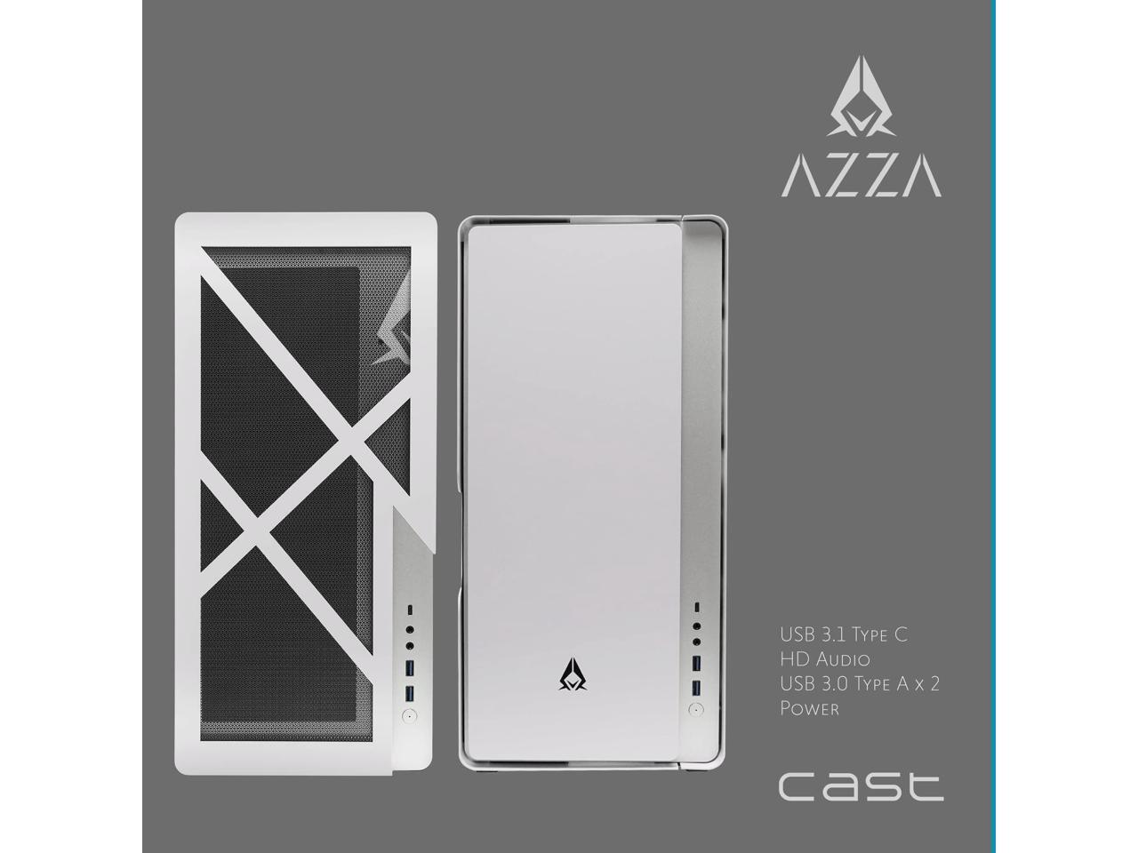 AZZA CAST PC Case - ATX Mid-Tower with Aluminum Wings, Mesh & Plate Front Panels, Open Chassis with Detachable Frame & Customizable Exterior, 360mm Radiator Support, 120mm ARGB Rear Fan - White