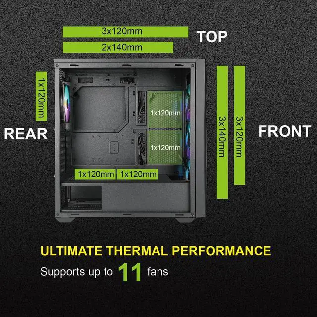 Multifaceted Airflow Support: Direct airflow to the GPU can be achieved by adding 2 x 120 mm fans above the PSU shroud, bringing the total fan support up to 11 x 120 mm fans ^^