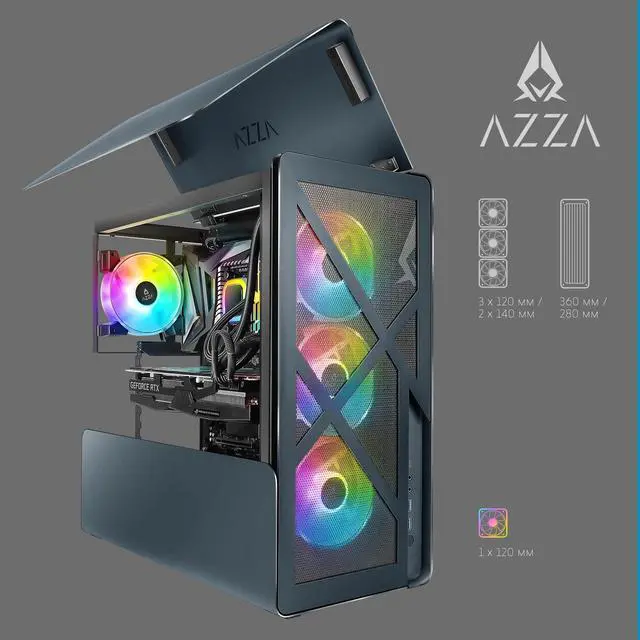 SIMPLY COOL: An open design ensures high-volume air cooling, particularly around the GPU; Active cooling clearances include a max. 165mm CPU cooler & front 280/360mm radiator with 3 x 120mm (2 x 140mm) fans; comes with a 120mm Hurricane III ARGB rear fan ^^