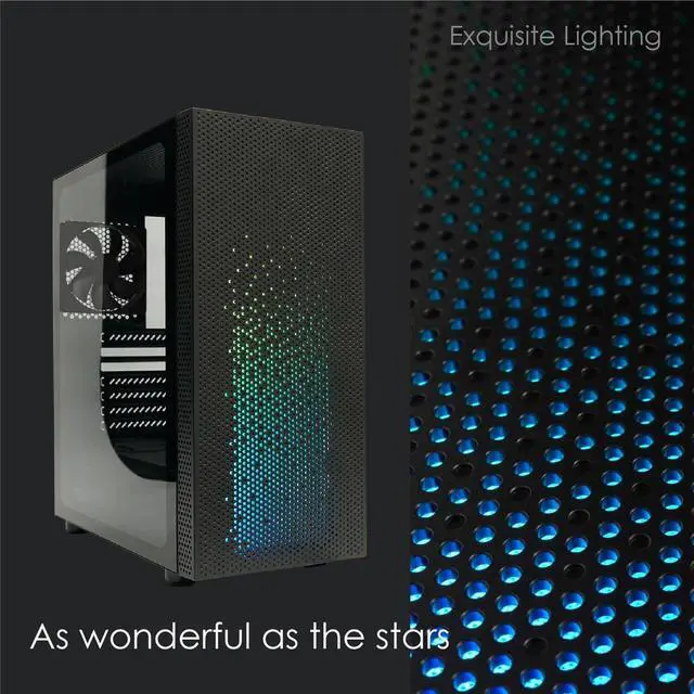 Inspired by the majestic night sky, the Celesta 340 is a beauty to behold. Its dazzling front panel design brings a bright and unique new aesthetic while still offering good thermal performance. It can accomodate up to a 350mm video card, a 360mm radiator, 6 fans, and 6 storage disks, giving you the freedom to build as robust of a system as you would like.