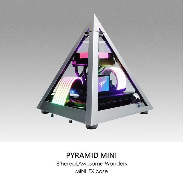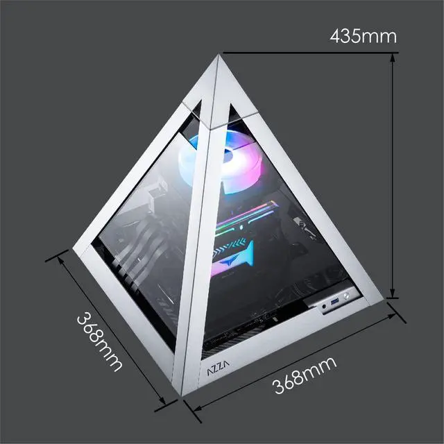 The AZZA PYRAMID MINI 806 transforms the conventional workspace into a show-stopping display. The luxurious aluminum exterior with four tempered glass side panels offers users an unrestricted 360-degree view of the components inside. The MINI 806 has a multi-level design that provides easy installation and upgrades when using any Mini-ITX motherboard setup. It is preinstalled with the 120mm Hurricane II digital RGB fan, with the option of adding a second 120mm radiator below the fan mount plate for additional cooling performance.