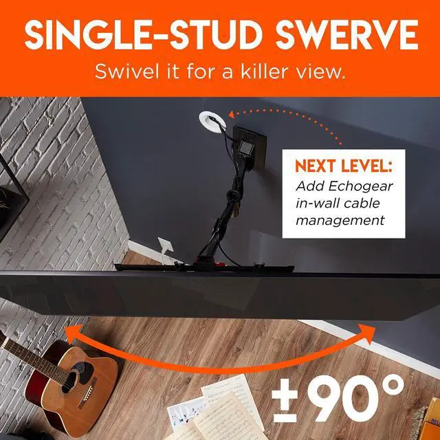 Wrangle up those dangling cords with the through-arm cable management and cable clips. Take it to the next level by adding on an Echogear in-wall cable management system.