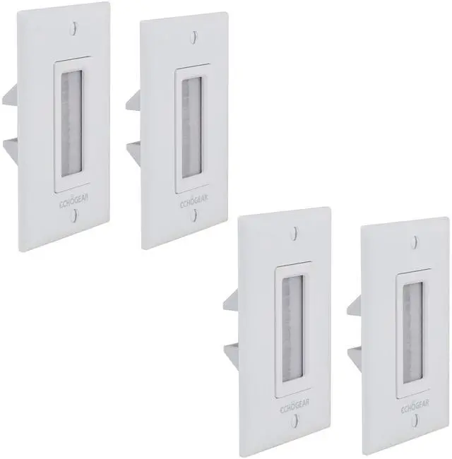 Brush plate wall cover hides up to 8 low voltage cables behind the wall. Top-notch brushes keep your cables in place & won't break off. ^^ Easy to install, even for DIY rookies. Includes cutting template & simple manual that'll have you fired up to hide some cords. Just bring a drywall saw and screwdriver for a quick 30-minute install. ^^ Use the included brackets to securely lock the brush plate onto your wall with a flush finish. Plus, you can install them anywhere, no existing wall box required. ^^ Behind the brush plate is a cable catching mechanism that prevents your cables from falling into the wall.