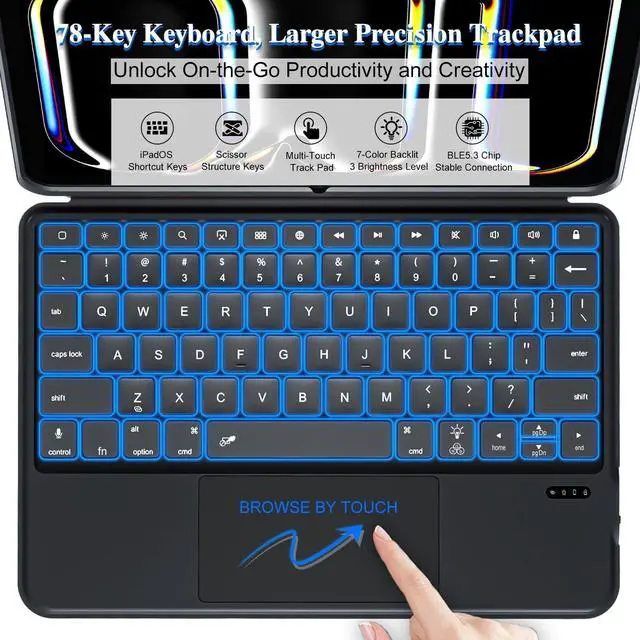 Larger Precision Trackpad: Support full multi-touch gesture, smart palm rejection. Allow you navigate iPad with multi-finger gesture controls, like tap, swipe, scroll and switch apps. Elevate mobile office productivity to edit documents, browse the web and build presentations.