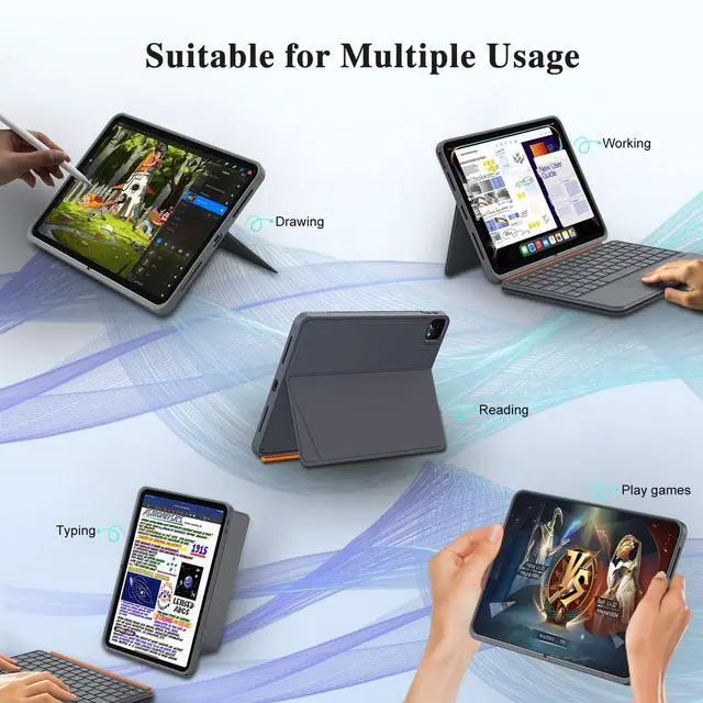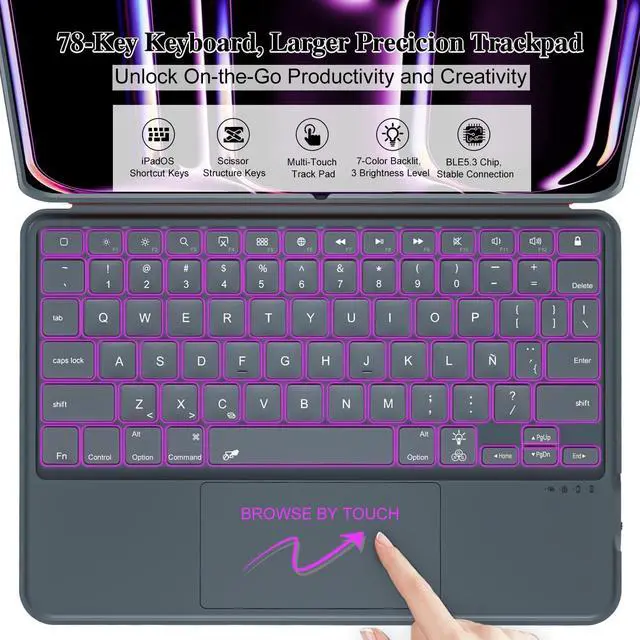 Larger Precision Trackpad: Support full multi-touch gesture, smart palm rejection. Allow you navigate iPad with multi-finger gesture controls, like tap, swipe, scroll and switch apps. Elevate mobile office productivity to edit documents, browse the web and build presentations. ^^