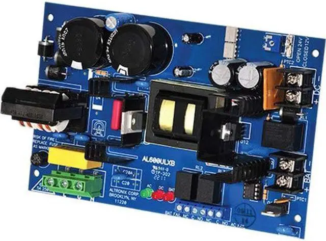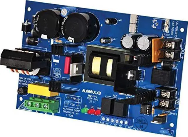 Power Supply 12Vdc Or 24Vdc @ 6A, Type Power Supply/Charger Board, Material Phenolic or Fiberglass, Length 5.10 In, Width 7.80 In, Height 2.60 In, Input Voltage 115VAC, Voltage OUTPut 12VDC or 24VDC, OUTPut Current 6A Amps, Input Frequency 60 Hz, Standards UL RECOGNIZED, UL294, UL1481, Includes Battery leads