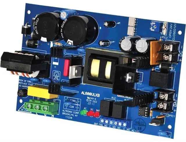 Power Supply 12Vdc Or 24Vdc @ 6A, Type Power Supply/Charger Board, Material Phenolic or Fiberglass, Length 5.10 In, Width 7.80 In, Height 2.60 In, Input Voltage 115VAC, Voltage OUTPut 12VDC or 24VDC, OUTPut Current 6A Amps, Input Frequency 60 Hz, Standards UL RECOGNIZED, UL294, UL1481, Includes Battery leads
