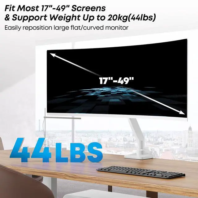 Wider Compatibility: This single monitor arm fits most flat / curved screens 17 inches to 49 inches with a supporting weight of 2-20 kg ( 4.4 to 44 lbs) & VESA patterns 100 x 100 mm and 75 x 75 mm. Please check the compatibility before purchase ^^