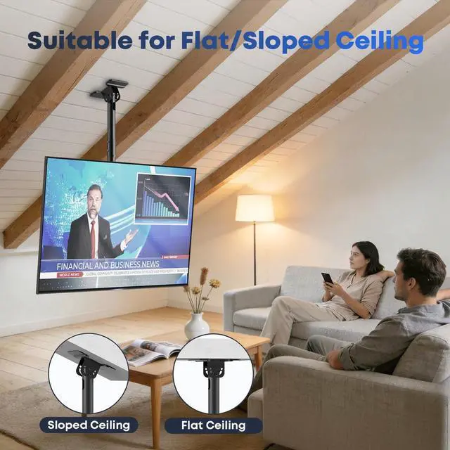 • Kid-Safe& Space-Saving: Our ceiling TV mount effectively prevents your children or pets from accidentally knocking over your expensive television during play, eliminates the need for a bulky TV stand, giving you more room for what matters.