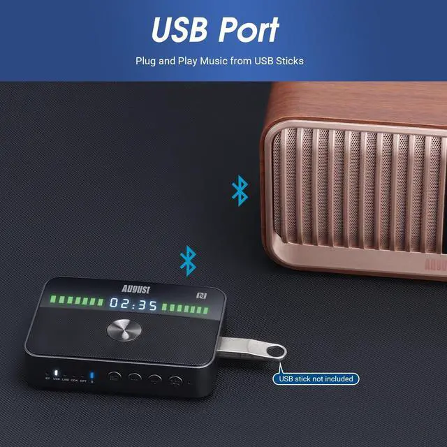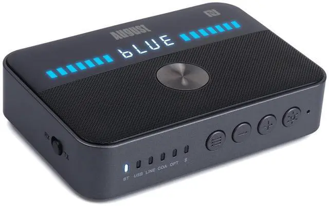 DUAL TRANSMITTER AND RECEIVER - 2-in-1 Bluetooth audio adapter. Transmit mode sends audio wirelessly from car stereo, radios, TV to up to two devices. Receive mode turns wired speakers or Hifi Bluetooth with multipoint to connect up to two devices. Multiple connections allows you to send music from one phone or TV to two separate headphones simultaneously, or receive music from two different sources seamlessly ^^ NFC BLUETOOTH 5.3 - Enjoy audio with under 40ms of latency and multipoint connection for up to two devices. Tap with NFC on Android devices to quickly connect up to two phones at once to share music without repeated pairing - ideal for parties! ^^ USB, 3.5 mm, OPTICAL, COAXIAL, RCA AUDIO ADAPTER - Connect as a Bluetooth AUX adapter with 3.5 mm or use RCA stereo cable, optical audio TOSLINK or coaxial audio.