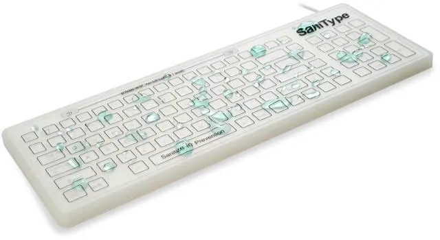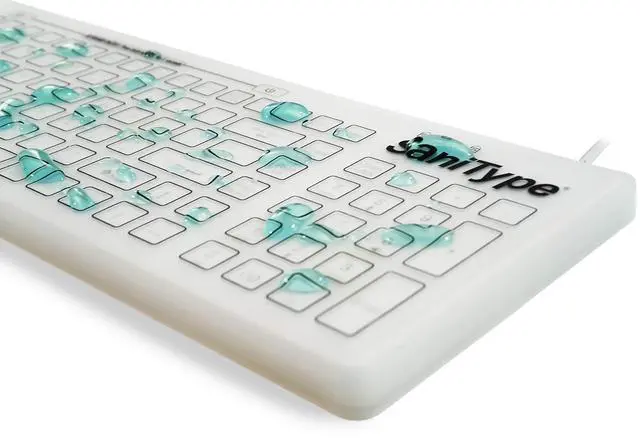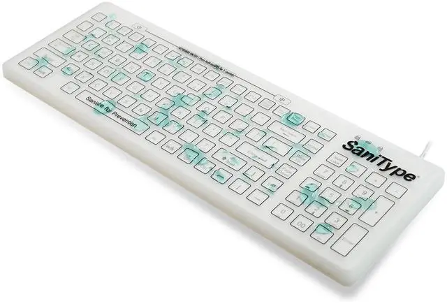 The KBSTRC106SC-W is a professional-grade smooth surface keyboard that has a permanent silicone cover for easy one-swipe cleaning. This keyboard is intended for use in hospitals, dental offices, laboratories, as well as food processing. Highlights "Sanitize for Protection" messaging to assist in reminding users to adhere to environmental surface safety and cleaning protocols. This keyboard is fully sealed and easier to keep clean, reducing cross-contamination in environments where it's critical to avoid leaving organic or hazardous materials trapped in crevices. It's easy to clean & disinfect, reducing the risk of cross-contamination.