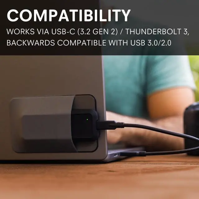 1TB of high-performance portable NVMe SSD storage ideal for photographers, videographers, gamers, and field producers managing demanding media assets. ^^ Sustained NVMe performance up to 1, 050MB/s via USBC 3.2 Gen2 for seamless media streaming and transfers. ^^ Rugged aluminum chassis offers passive heat dissipation and resilience in demanding environments. ^^ Plug and play support for Mac, Windows (reformat needed), USBC 3. x, and Thunderbolt3; includes both USBC and USBA cables.