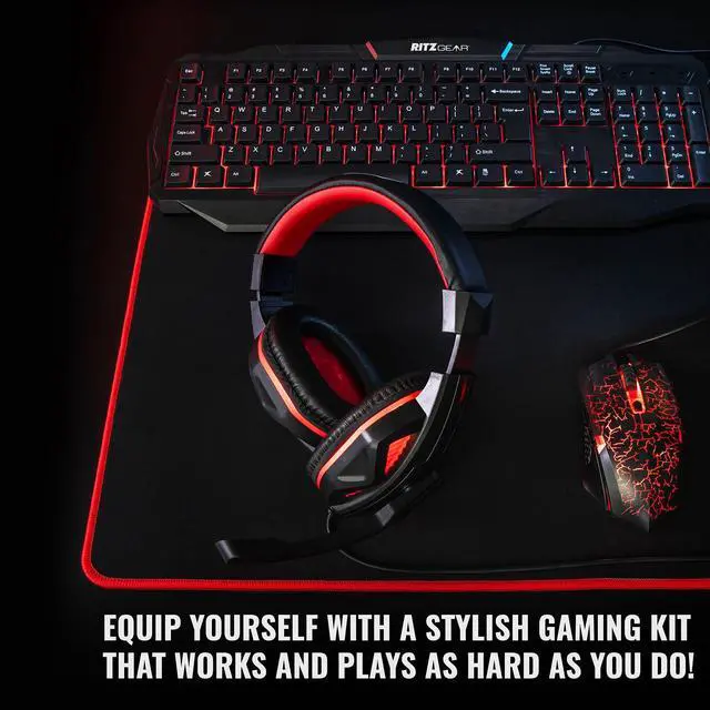 Elevate your gaming experience with this comprehensive gaming peripherals combo featuring a red backlit keyboard, mouse, and headset. The keyboard comes equipped with multimedia keys for enhanced functionality during gameplay, while the matching red backlit gaming mouse provides precise control. The package includes a super clear gaming headset for immersive audio communication, and convenient storage cases to protect your gear. This complete set is designed specifically for Windows PC gaming, offering all essential gaming peripherals in a coordinated red theme.