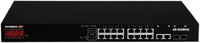 EDiMAX PRO 16 + 2 Ports Gigabit POE+ Smart Managed Switch, Long Range 656 Ft (200M), Up to 30W Per Port (Total Power Budget: 280W) 280W Total with 2 RJ45/SFP Combo Ports, Surveillance - GS-5216PLC