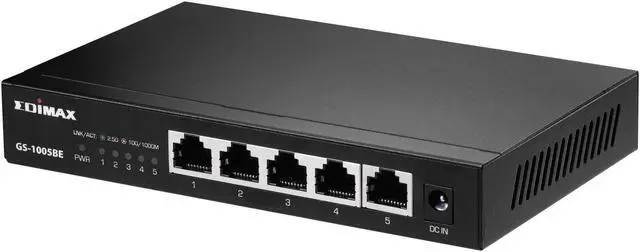 Upgrade your existing Ethernet network with up to 2.5Gbps of performance with 5 full 2.5 Gigabit high speed ports on the EDiMAX GS-1005BE 5-sport switch.