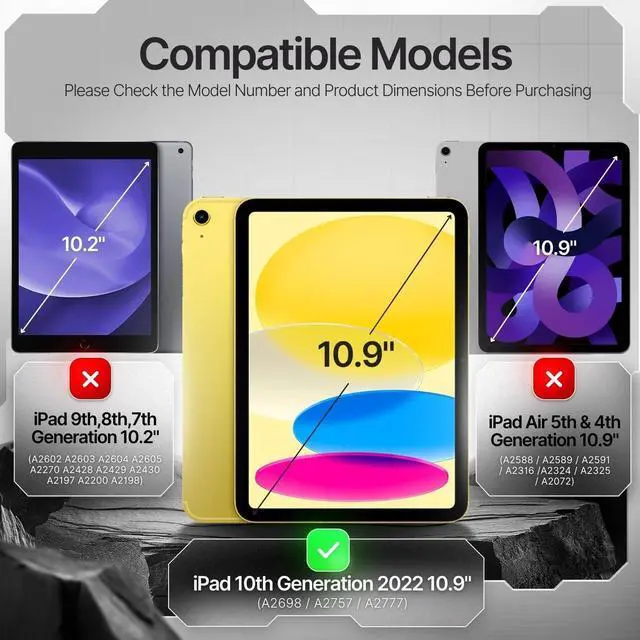 Material: Liquid Silicone Rubber Cover / Hard Polycarbonate Shell Compatible with iPad 10.9 Inch 10th Generation 2022 (Model