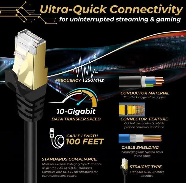 Universal Compatibility: This Cat 6 Cable connects seamlessly to routers, modems, switches, PCs, gaming consoles, PoE devices, and more, fully backward compatible with Cat5 and Cat5e networks ^^