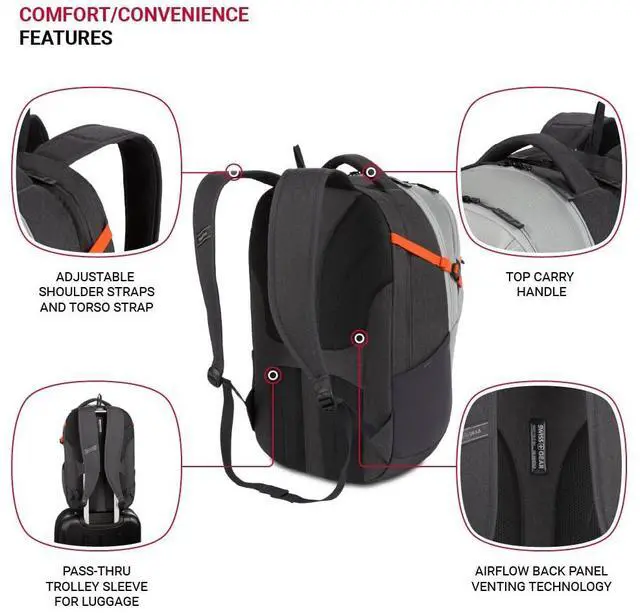 And when you're on the move, the luggage sleeve smoothly slides over luggage extension handles, making your journeys effortless and stylish. The SwissGear UrbanPro Laptop Backpack isn't just a bag: it's an embodiment of your modern, dynamic lifestyle. This backpack is ideal for commuters, travelers, and students seeking convenience and style with enhanced organization.