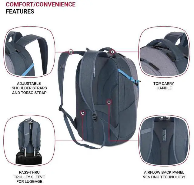 And when you're on the move, the luggage sleeve smoothly slides over luggage extension handles, making your journeys effortless and stylish. The SwissGear UrbanPro Laptop Backpack isn't just a bag: it's an embodiment of your modern, dynamic lifestyle. This backpack is ideal for commuters, travelers, and students seeking convenience and style with enhanced organization.