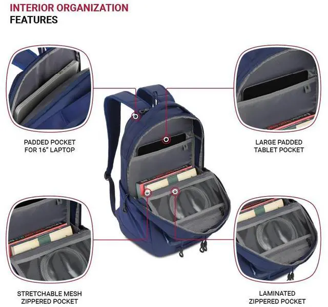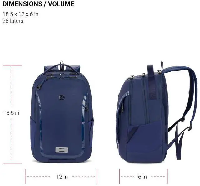 DescriptionSwissGear 1018 Laptop Backpack, 18.5 x 12.5 x 7, Fits Most 16-Inch Laptop, Navy.
