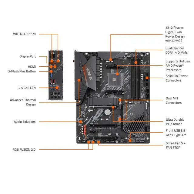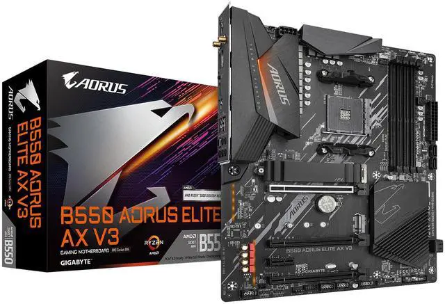 The B550 AORUS ELITE AX V3 combines premium AORUS features like advanced thermal design and improved connectivity with GIGABYTE's Ultra Durable technology, offering a no compromise solution for PC builders.