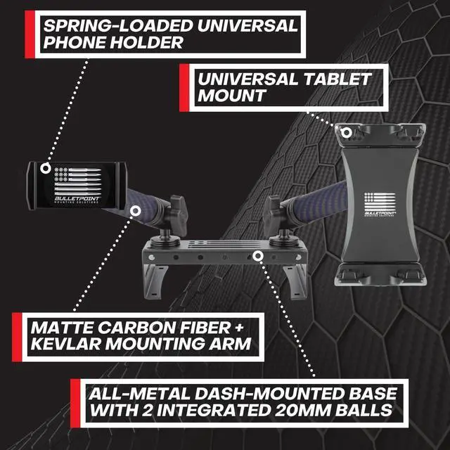 Looking for the sturdiest tablet + phone mounting solution compatible with your 2015-2020 Ford F-150 & 2017-2022 Ford Super Duty? This dual ball dash mount bundle by Bulletpoint Mounting Solutions is a complete kit which includes everything you need to securely mount your phone and tablet.