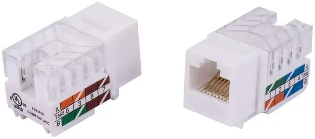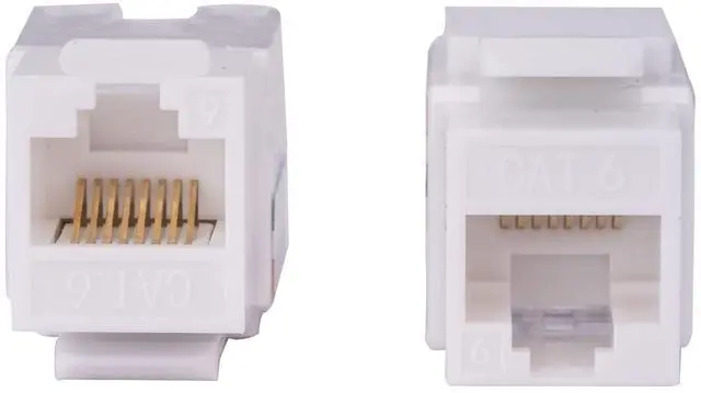 Cat6 keystone jack designed for use with a wall-plate for network wiring installs. Simply insert the leads in the coloring order you wish and clamp them down. Category 6 Keystone Jacks are 8-Position 8-Conductor (8P8C) and use the same 110 Punch Down style that most patch panels use; no switching blades when jumping from keystone jacks to patch panels.