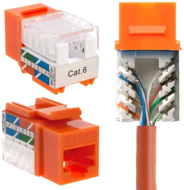 SATMAXIMUM Cat6 Keystone Ethernet Wall Jack Punch Down UTP 45-Degree (Easier Termination Than 90-Degree), RJ45 Slim Profile Speed Termination Orange - 45° Angled (50 Pack)