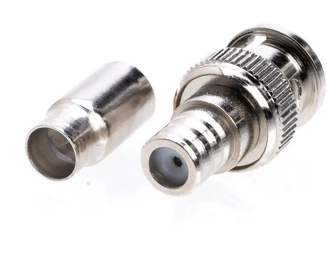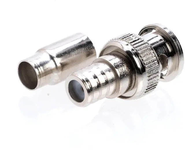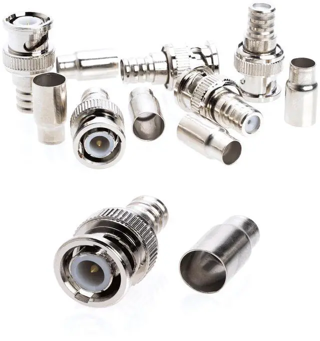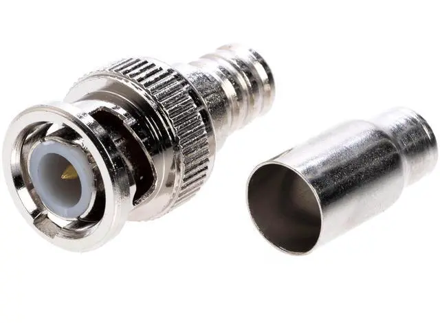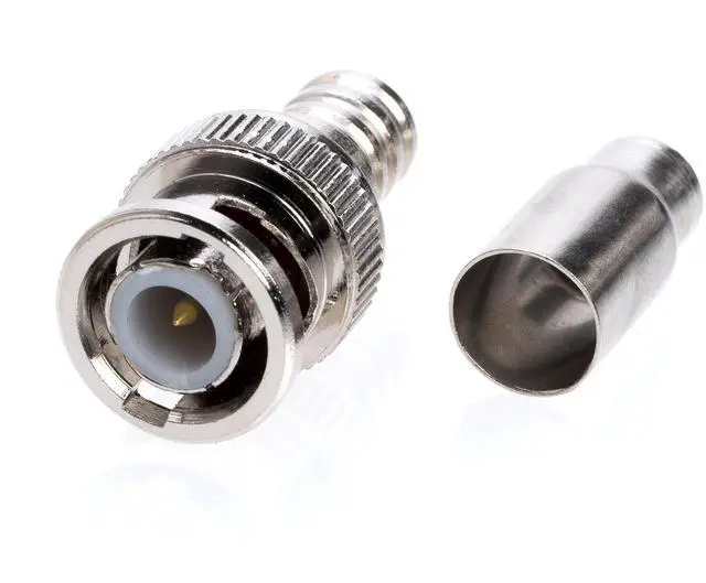 Use Crimp on BNC connectors to quickly and easily create custom lengths of BNC cable. Crimp on connectors are simple to attach and do not require expensive compression tools for use. It is best used in video surveillance applications. The BNC male connector will attach to video equipment like Time Laps VCRs, video sequencers, quad screen splitters, and monitors.