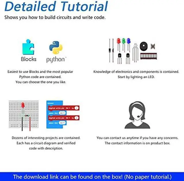 Comes with detailed tutorial and Blocks, Python code. (Download needed, no paper tutorial. )