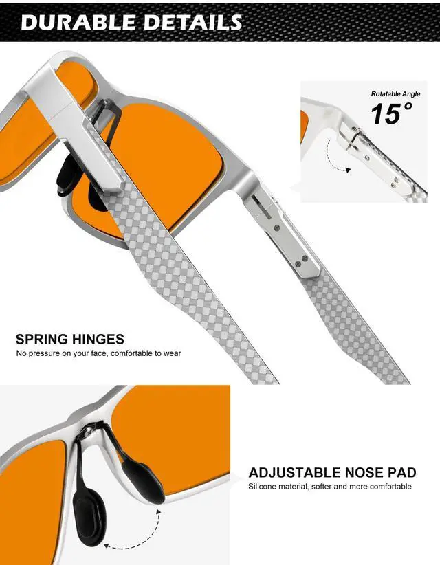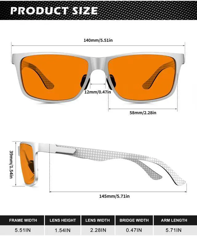 Premium Temple Material: With superior Al-Mg and carbon fiber composite temple, this type of blue light blocking glasses for men is ultra-light than pure metal frame, also more sturdy. No more worries about broken temples. As more suitable for anyone who often work or play games by the computer, do not miss this pair of practical and classic blue blocker glasses.