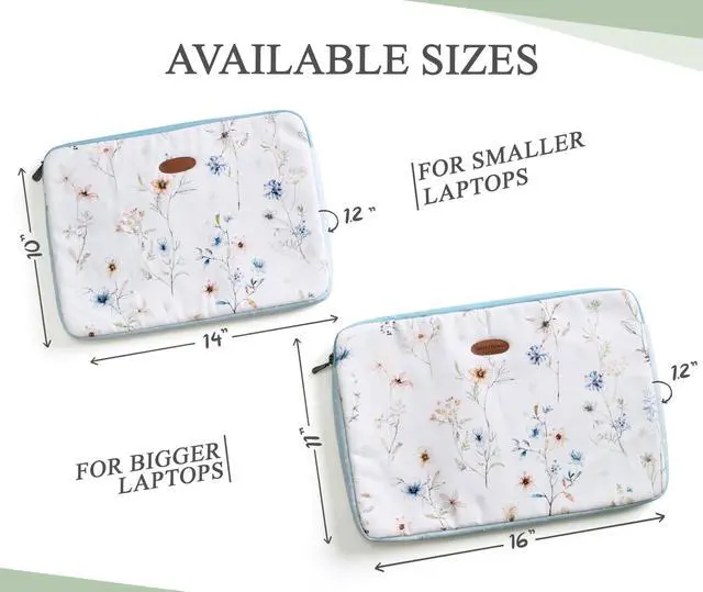 Comes in two sizes o Small - 14" Width, 10" Length, 1.2" Deep (Outer dimension) Compatible with 12"-13.3" Laptops / Ultrabooks, 13-13.5" Laptops / Notebooks / Ultabooks. o Large - 16" Width, 11" Length, 1.2" Deep (Outer dime