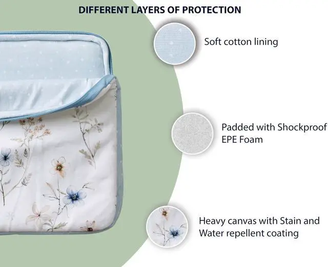 Maison d'Hermine Laptop Sleeve Upto 13.5 inch Stain and Water Repellent Cotton Canvas - Ice Florals