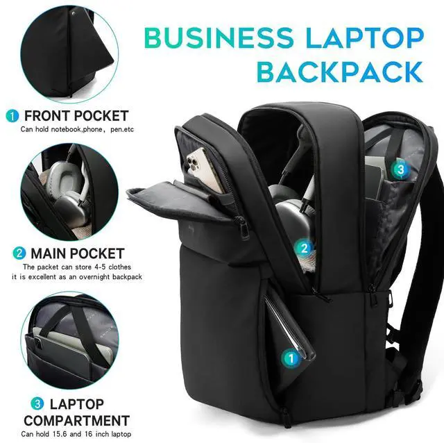 [(Multi-Function Pocket Design)] The laptop backpack have a hidden anti-theft pocket on the back for storing valuable items such as wallets,There is one pocket on the left side and one on the right side for placing water bottles and umbrella,In top pocket can fit your pen,key,glasses,The main pocket,It can store 5-6 clothes,it is excellent as an overnight business backpack and also can used for business travel and daily travel,In laptop compartment can hold 16 inch laptop and protect your laptop