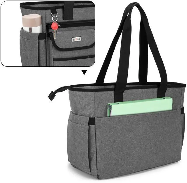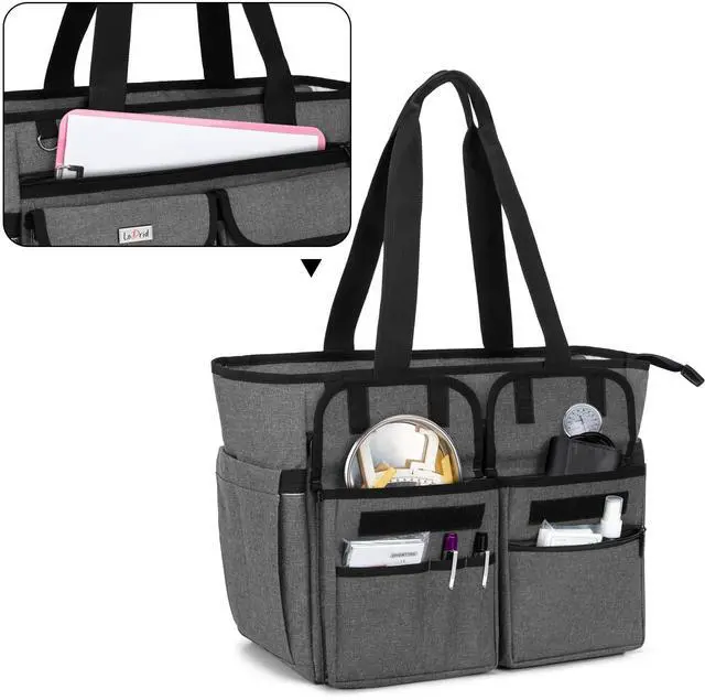 LoDrid Nurse Tote with Padded Bottom, Separated Storage for Laptops up to 15.6 Inch, Large Compartment, Gray