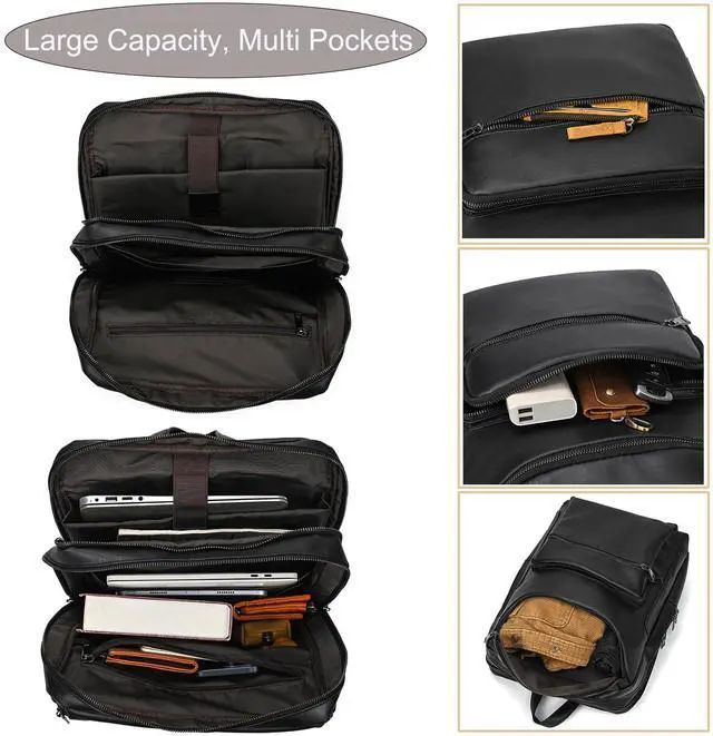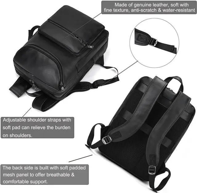 Genuine Leather: The backpack is made of genuine leather and high quality polyester lining. The surface of the leather shoulder backpack is smooth with fine texture, feels good to the touch. It is anti-scratch and durable to use for long term.
