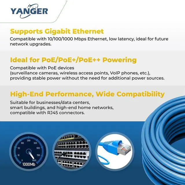 Enterprise-Level Anti-Interference Technology - Equipped with precision twisted pairs and enhanced HDPE insulation, reducing crosstalk by 60% compared to CAT5e. This ensures stable signal transmission in factories, data centers, and high electromagnetic interference environments. Ideal for IoT communications in manufactu