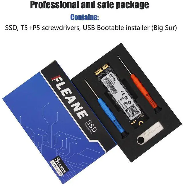 Order contains: 1 x PCIe NVMe High-Speed SSD(Pre-loaded with Catalina), 1 x16GB USB Bootable Installer (Big Sur), 2 xScrewdrivers (For removing th