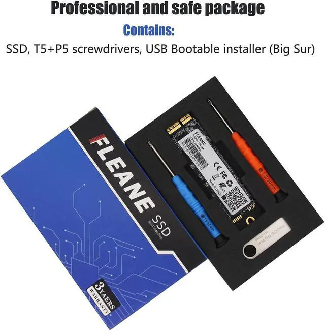 Order contains: 1 x PCIe NVMe High-Speed SSD(Pre-loaded with Catalina), 1 x16GB USB Bootable Installer (Big Sur), 2 xScrewdrivers (For removing th