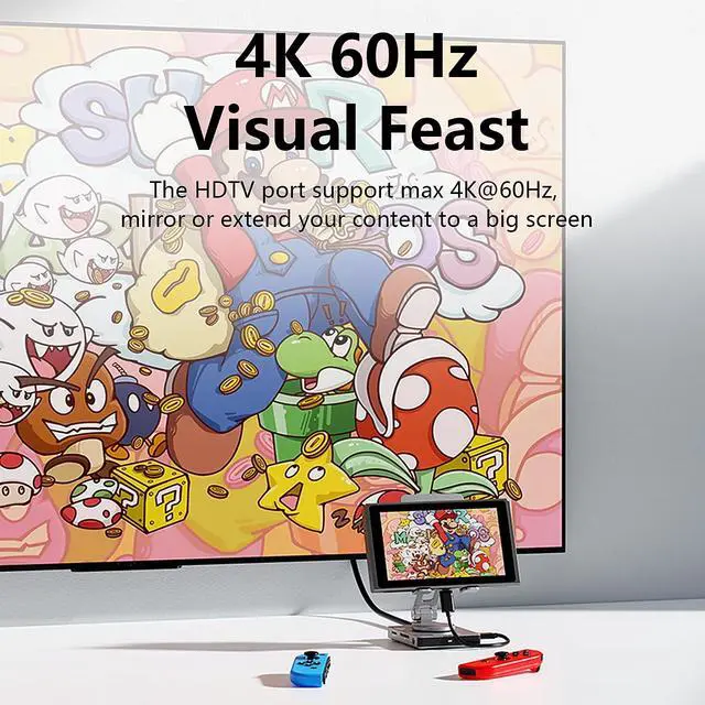 Versatile Connectivity: USB C Hub Stand adapter compatible with iPhone 15 16 Pro Max and Nintendo Switch devices ^^ High