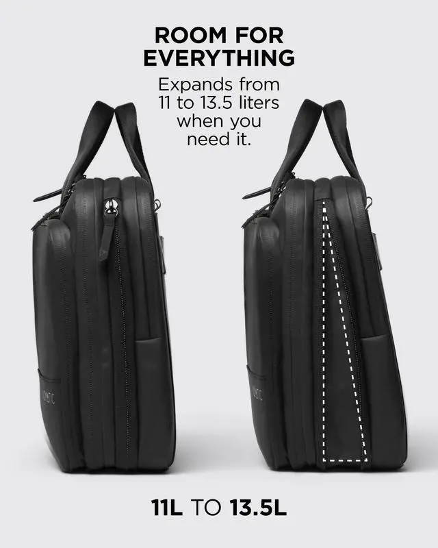 ^^ Expandable Storage Space: Easily switch from 11L to 13.5L to fit your days needs. This versatile laptop bag adapts to your workflow with smart internal organization and quick-access compartments.