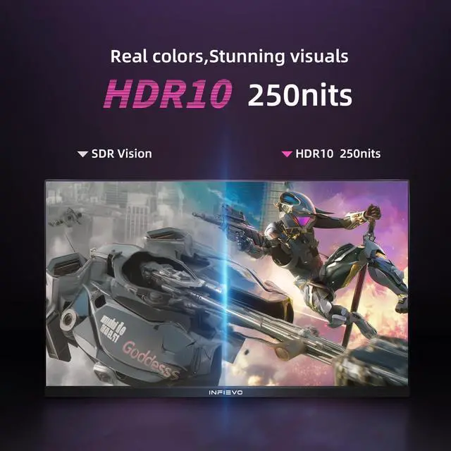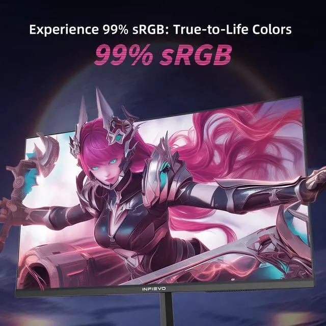 [Stunning Image Quality]: The INFIEVO 24 inch computer monitor delivers 1920*1080P resolution with 99% sRGB color gamut, over 16.7 million colors , IPS panel, offering deeper colors and defining features. It has a brightness of 220+-20cd/m^2,and with the HDR technology making the image clearer and the details better. Utilize advanced settings to adjust the color temperature and brightness of the screen, creating a more comfortable and natural viewing experience.