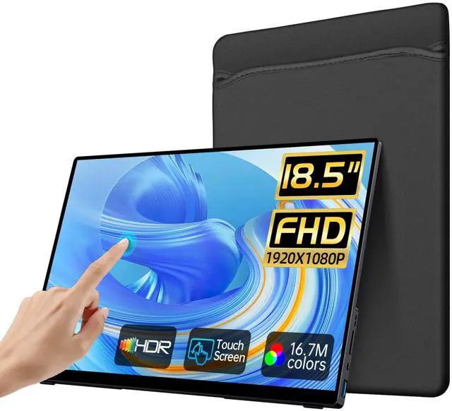 VOKENSU Portable Monitor Touchscreen,18.5'' FHD IPS Touch Screen Monitor, Travel Monitor w/Kickstand & Speaker, HDMI USB C External Monitor for Laptop PC 10-Point Touch for Windows devs