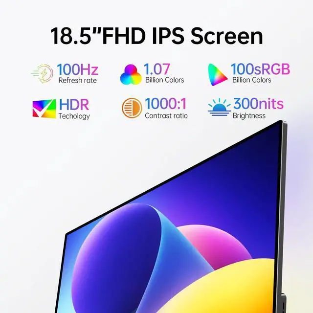 100Hz High Refresh Rate Display: This external monitor boasts a 100Hz refresh rate and 8-bit color depth, supporting 16.7 million colors, with a FHD resolution of 1920x1080 pixels. This ensures a smoother and more immersive gaming experience, reducing lag and motion blur, giving you a competitive edge in your games.