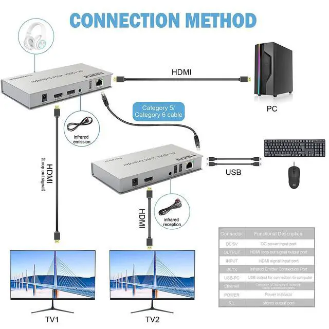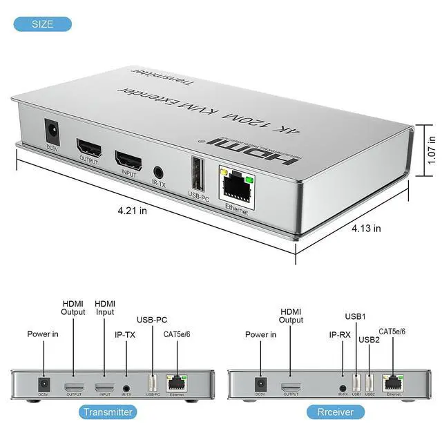 Versatile Applications: Ideal for a variety of environments, including corporate, educational, and entertainment sectors, where remote access is required. With its powerful video capabilities and flexible control options, this HDMI KVM USB Extender is a reliable solution for extending your HDMI and USB reach, improving both accessibility and efficiency in any operational setup.