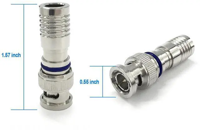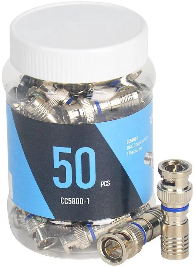 The ENS Male BNC Compression Connector is designed for professional or consumer installers working with RG59 coaxial cables. This pack includes 50 high-quality connectors, featuring a compression design for a secure and reliable connection. The compression feature ensures excellent signal transmission and minimizes signal loss. Each connector is built to last, providing long-lasting performance and durability. Whether you're setting up a surveillance system or working on audio/video installations, our Male BNC Compression Connectors are designed to meet your needs.