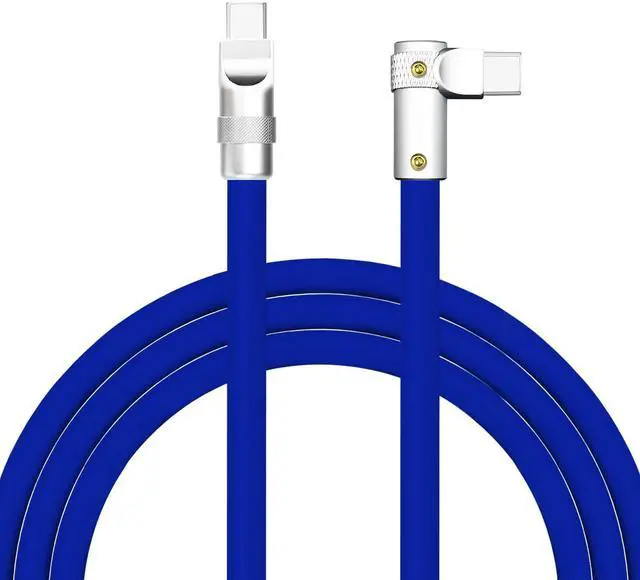 chubbycable FlexElbow Pro - 90 Degree Design 240W Fast Charge Cable Ultra-Thick Silicone Right Angle USB C Cable Phone Tablets Charging Cord, Dark Blue, Type-C to Type-C, 16.4FT