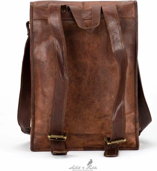 This classic leather backpack design gets an update for modern necessities - namely your notebook computer or tablet device. Internal padding protects without taking up space, and the top cover flap keeps everything secure but accessible. Best, the distinctive look never screams "computer inside. "