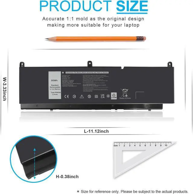 SPECIFICATION : Model Name: 95Wh Standard Rechargeable Li-ion battery Type PKWVM; Battery Type: Li-ion; Voltage : 11.4V; Capacity : 95Wh; Cells: 6-Cell; Condition : Brand New; Life span: Up to 1000 discharge per charge cycles