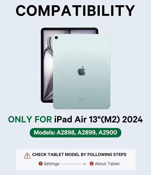 Compatibility: GreenLaw x Y Series Case with Keyboard specifically designed for iPad Air 13 inch (M2)(2024), models include 2024 iPad Air 13 inch(A2898, A2899, A2900); Please check your iPad model number on the back to ensure a perfect fit before purchasing. NOTE: IT'S NOT FIT FOR iPad Pro 13 M4 2024 (Model: A2925/A2926/A3007) and iPad Pro 12.9.